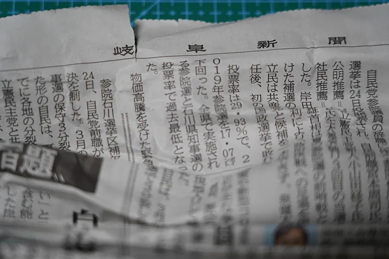 GW ちょっと前に Keyball61 の在庫があったのでオンライン注文、GW の頭くらいには届きました。梱包に使われていた岐阜新聞を見てほっこり、こういうローカルっぽい要素好きです。