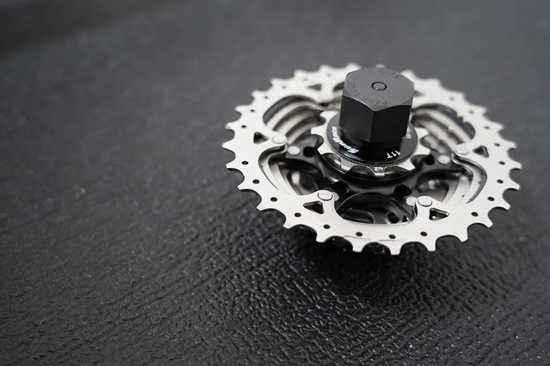 スプロケットを触るのが初めてだったので、Kicker Core に取り付けるためにどうやってスプロケットをバラバラにするかわからず泣きそうになりました。画像のように黒いキャップ見たいな工具を使います。
